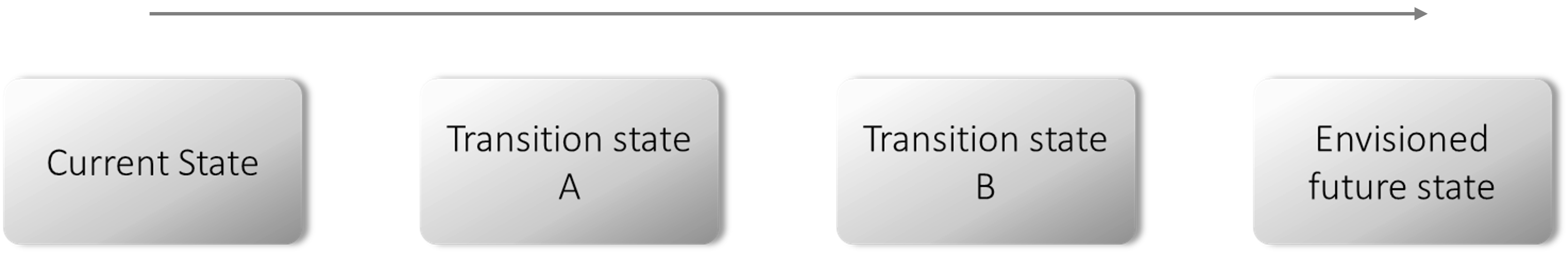 Several intermediary stages/states might be required to take into consideration dependencies and physical limitations of moving directly to the envisioned end state.